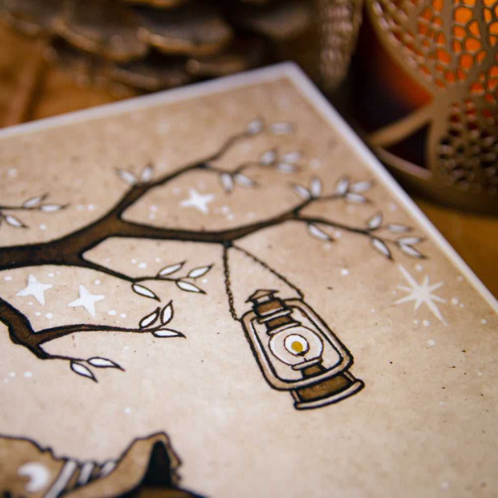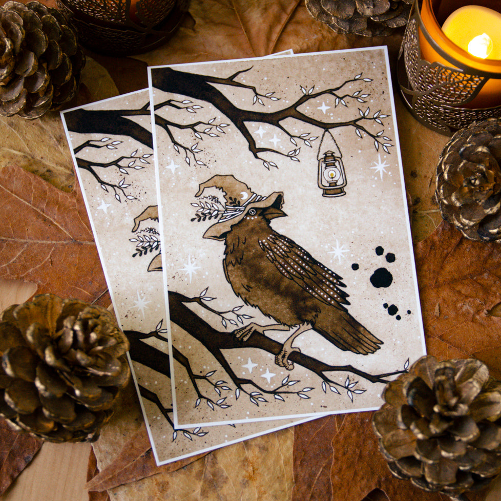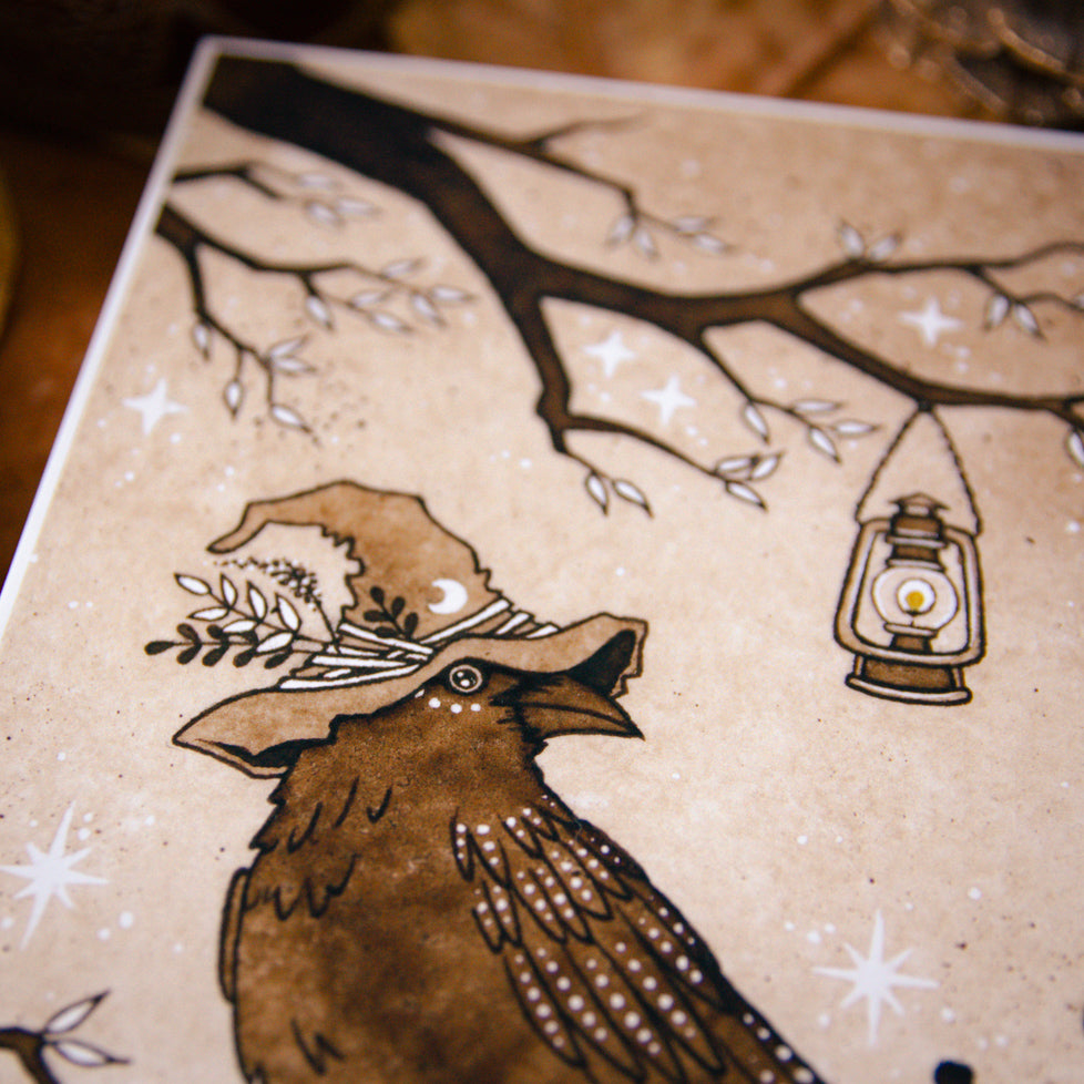 ✨ Introducing the Hermit - a whimsical print from Tarot of a Forest Witch. This enchanting piece captures a quirky crow wearing a witch hat, with a lantern softly glowing by its side. Let this playful interpretation remind you of the beauty in seeing things from a different perspective. Perfect for adding a magical, mysterious touch to your sacred space or home decor.
